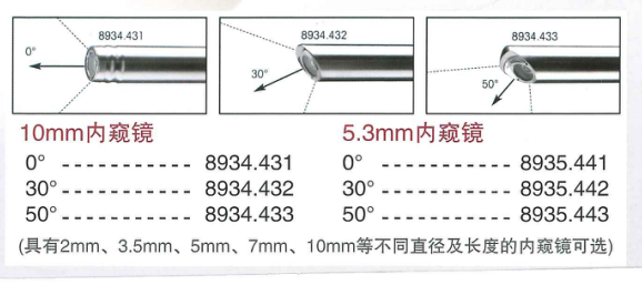 | 8935.442 | 30°腹腔鏡 | 直徑5.3mm,可高溫高壓消毒 |